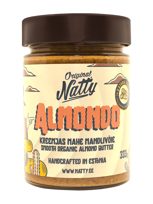 Almondo riekstu krēma pagatavošanai tiek grauzdētas un samaltas nemizotas mandeles. Rezultātā iegūts krēmīgs un šķiedrvielām bagāts mandeļu krēms. Mandeļu mizas satur šķiedrvielas, kas darbojas kā prebiotiķi un palīdz uzturēt gremošanas sistēmu kārtībā. Kā ierasts Natty produktiem, arī Almondo mēs nepievienojam taukus, eļļas vai cukuru. Pilnīgi bez sāls. Lieliski piemērots gan saldiem, gan sāļiem ēdieniem!