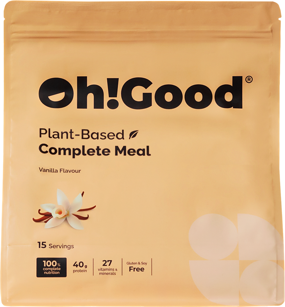 Sastāvdaļas: zirņu proteīna izolāts, rīsu proteīna koncentrāts, kaņepju proteīna koncentrāts, dekstroze, maltodekstrīns, fruktoze, vidējas ķēdes triglicerīdu pulveris (MCT) no kokosrieksta, kokosriekstu piena pulveris, šķiedrvielas, inulīns, bezglutēna auzu milti, banānu pulveris, linsēklu milti, sazarotās ķēdes aminoskābes (BCAA) 2:1:1, kurkuma, multivitamīnu maisījums (A vitamīns (retinilacetāts); C vitamīns (L-askorbīnskābe); D vitamīns (holekalciferols, ergokalciferols); K vitamīns (filohinons, menahinons); E vitamīns (DL-alfa-tokoferilacetāts); B1 vitamīns (tiamīna mononitrāts); B2 vitamīns (riboflavīns); B3 vitamīns (nikotīnamīds); B5 vitamīns (kalcija D-pantotenāts); B6 vitamīns (piridoksīna hidrohlorīds); folāts (kalcija L-metilfolāts); B12 vitamīns (cianokobalamīns); D-biotīns; kālijs (kālija citrāts, kālija hlorīds); hlorīds (nātrija hlorīds, kālija hlorīds); kalcijs (kalcija karbonāts); fosfors (augu izcelsmes fosfāti); magnijs (magnija oksīds); jods (kālija jodīds); dzelzs (dzelzs fumarāts); selēns (nātrija selenīts); cinks (cinka oksīds); varš (vara glikonāts); mangāns (mangāna sulfāts); hroms (hroma hlorīds); molibdēns (nātrija molibdāts); koenzīms Q10), probiotiķu maisījums, vaniļas aromatizētājs, stabilizētājs: ksantāna sveķi, saldinātājs: stēvija.